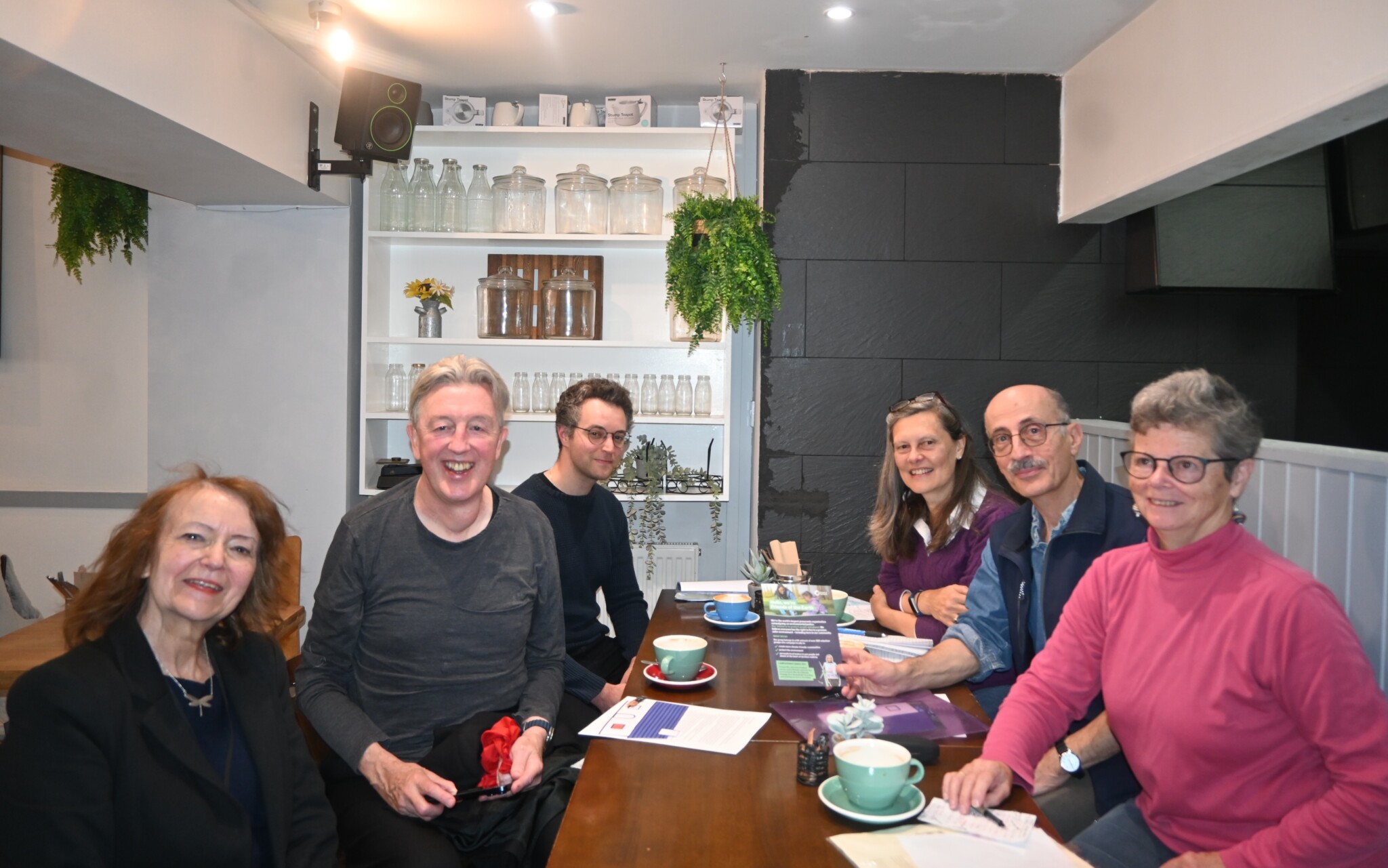 Pictured top: (left to right): Auriel Glanville, Paul Kohler, MP for Wimbledon, Edward De Quay, Kate Main, Gabriel Partos and Linda Murgatroyd, at Bliss Coffee Shop, Wimbledon Broadway (Picture: Merton Friends of the Earth)
