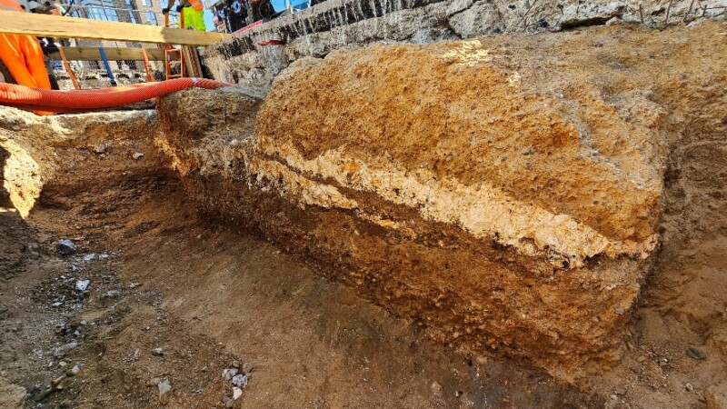 “There has been so much activity here over the past few hundred years, from sewers to power cables, tramlines and of course the building of the modern road, so we’re really excited to find such a substantial chunk of Roman material remaining.”