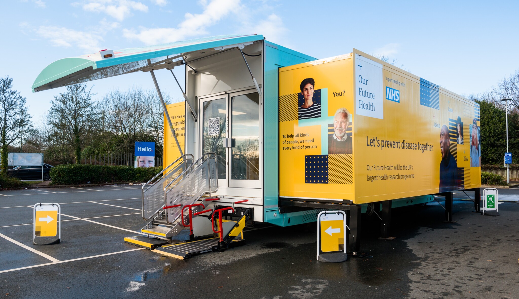 Mobile clinics for Our Future Health will visit car parks throughout the UK for a programme that also includes pop-up clinics for walk-in appointments.
