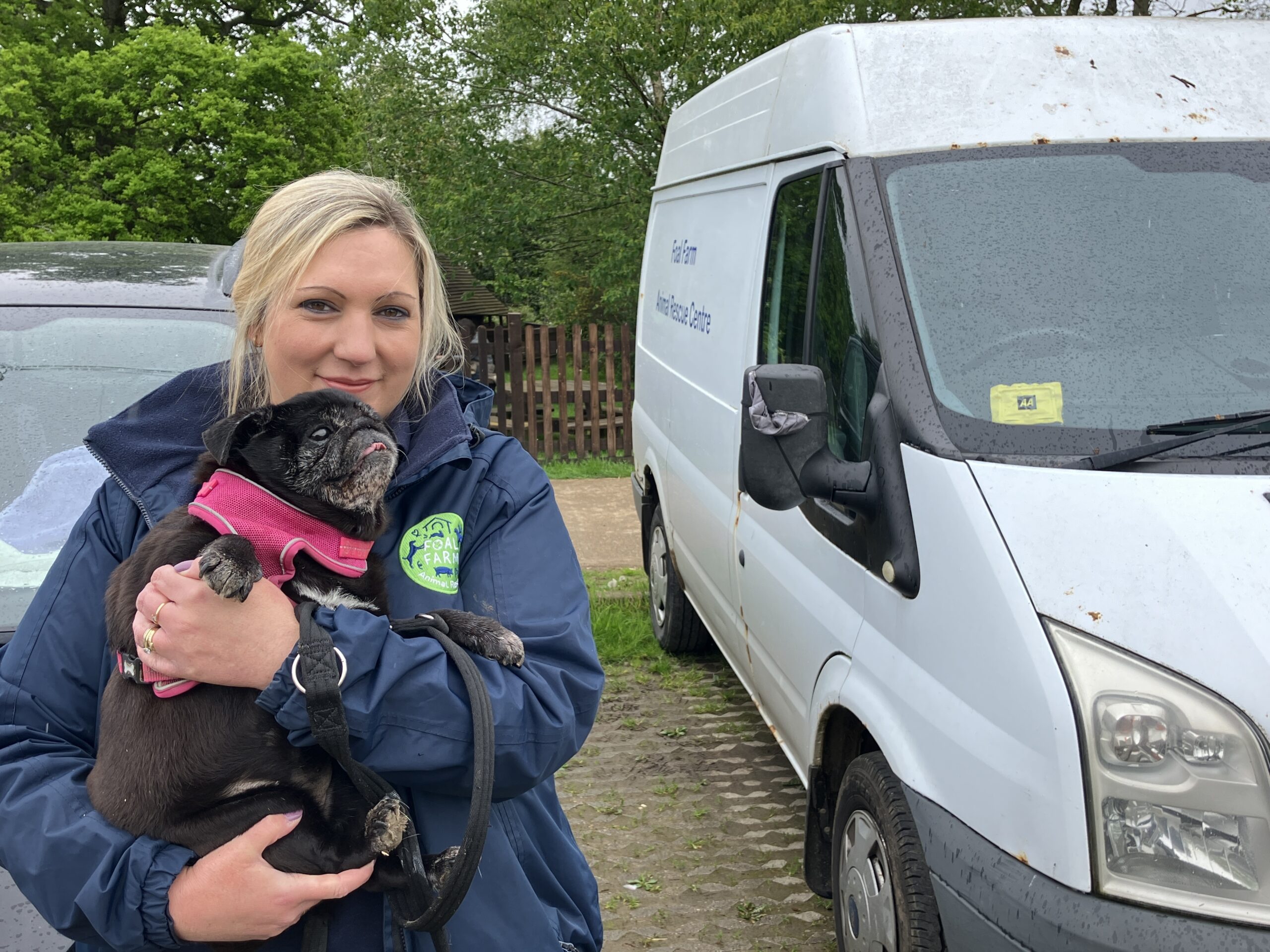 Pictured top: Lucy Bennett, finance manager for Foal Farm, shown with Bug the pug in front of the farm’s current animal ambulance (Picture: Joe Coughlan)