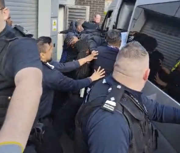 Anti-deportation protest blocks immigration officers trying to remove two men in van