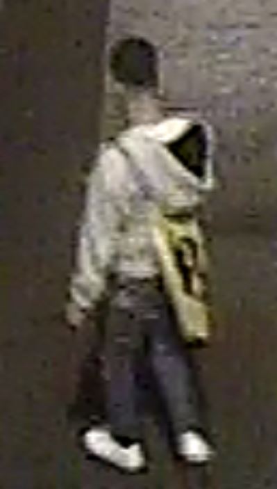 He is a young man, possibly aged in his early 20s, who was wearing a stud earring and carrying a plastic JD Sports string bag on his back.