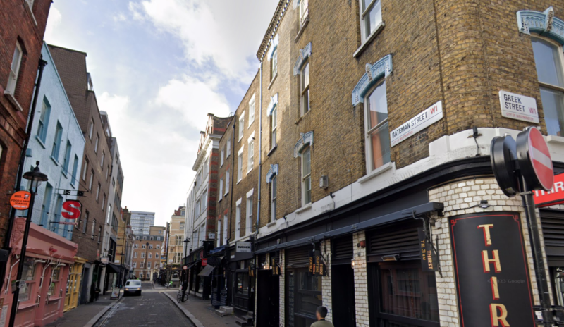 At around 1.30am the victim was assaulted and robbed of his phone by a group of men in Bateman Street, off Frith Street, in Soho.