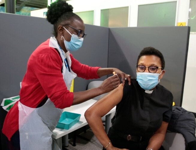 The Venerable Dr Rosemarie Mallett, Archdeacon of Croydon, said she was pleased to receive her first jab in the “heart of Croydon”.