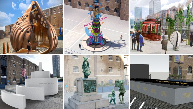 Six leading artists have been shortlisted to create a memorial to the victims of the transatlantic slave trade in London’s Docklands.