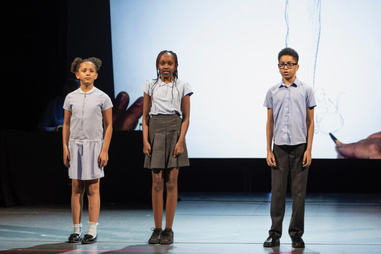 Three 10-year-olds from a school in Wandsworth have won a national competition and taken centre stage at the National Theatre to deliver a lively poetry performance.