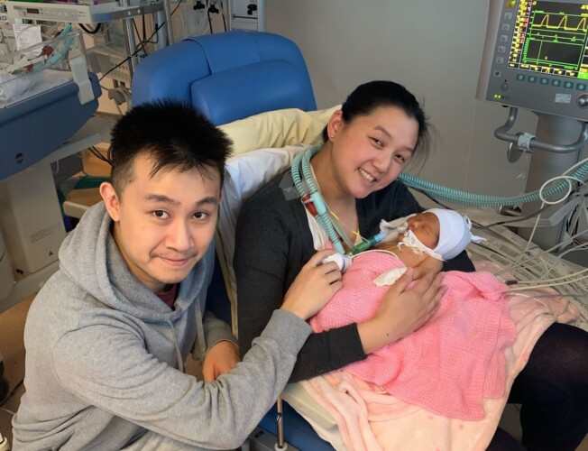 Weeta went into labour prematurely at 36 weeks and was transferred from King’s College Hospital to St Thomas’ maternity department for specialist care.