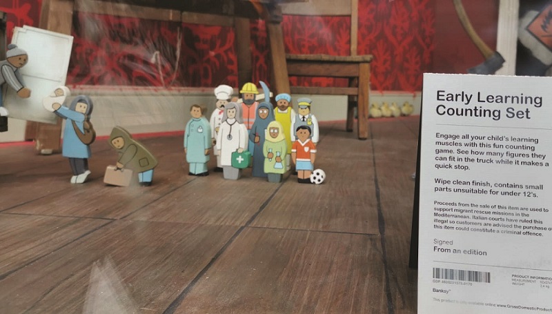 Other parts of the artwork include what looks like traditional children’s toys but in fact represent refugees.