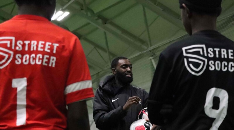 Pictured top: Jack gives a lesson at Street Soccer London (Picture: Street Soccer London)