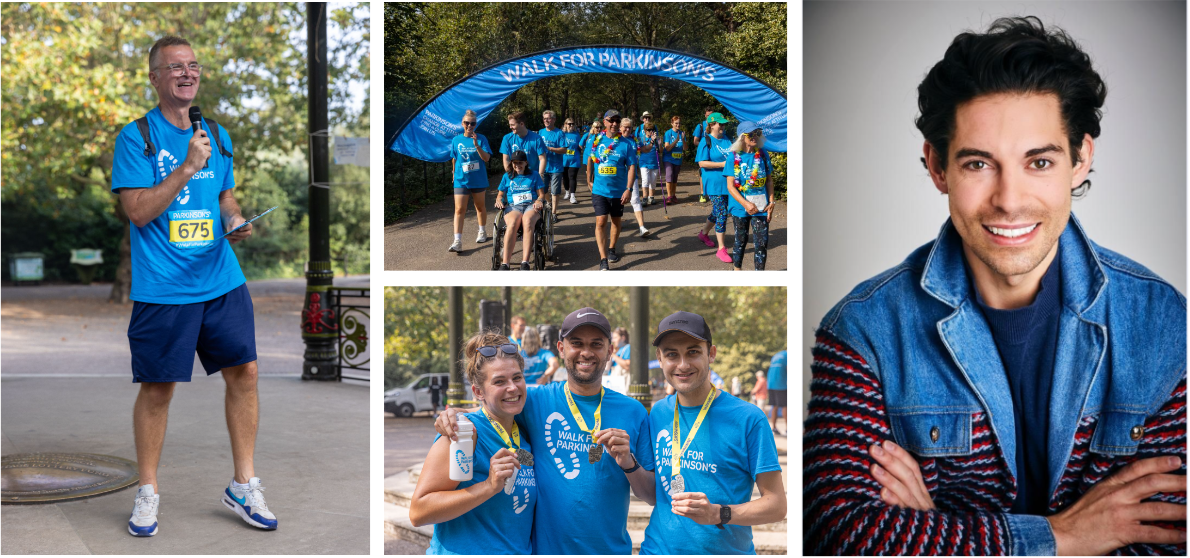 Pictured top: Dave Clark (pictured left) and fundraisers taking part in Walk for Parkinson’s last year at Battersea Park. Tom Read Wilson (right) will also be in attendance this year (Picture: Parkinson’s UK)