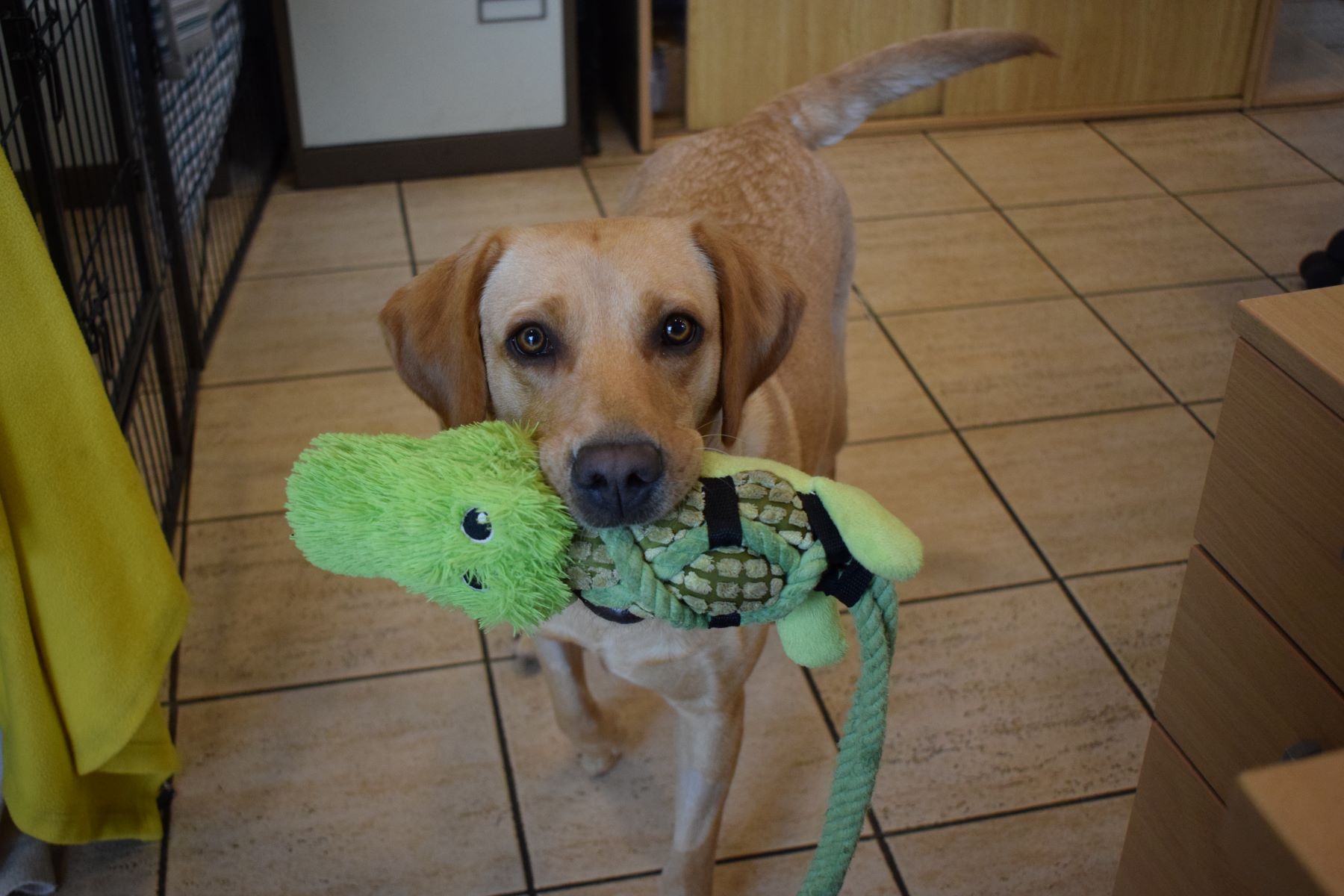 Daisy, a three-year-old heavily pregnant Labrador, was brought to Battersea when her previous owners were forced to move and unable to find any rented accommodation that allowed pets.