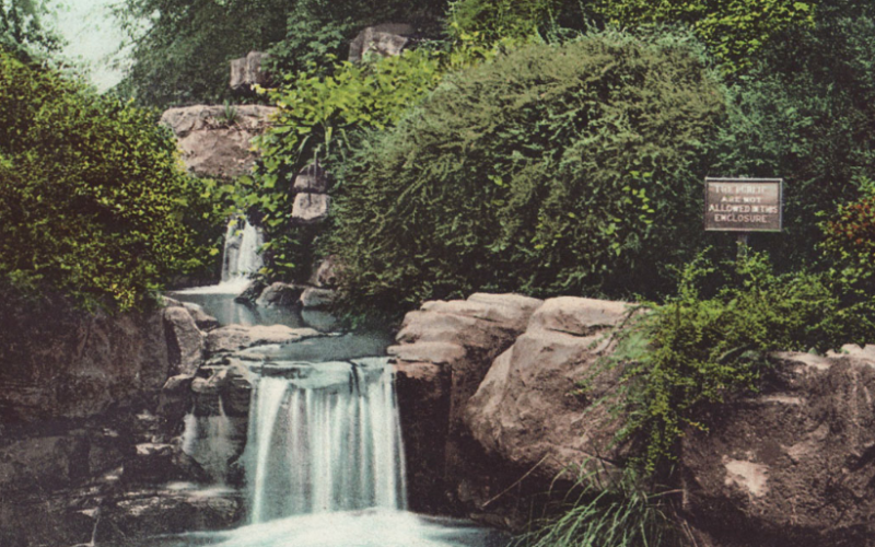 The water feature that cascaded into the park’s 10-acre boating lake was switched off between the World Wars after extensive erosion and trespass saw the feature fall into disrepair. Attempts at repair the feature in the 1980s created further damage.