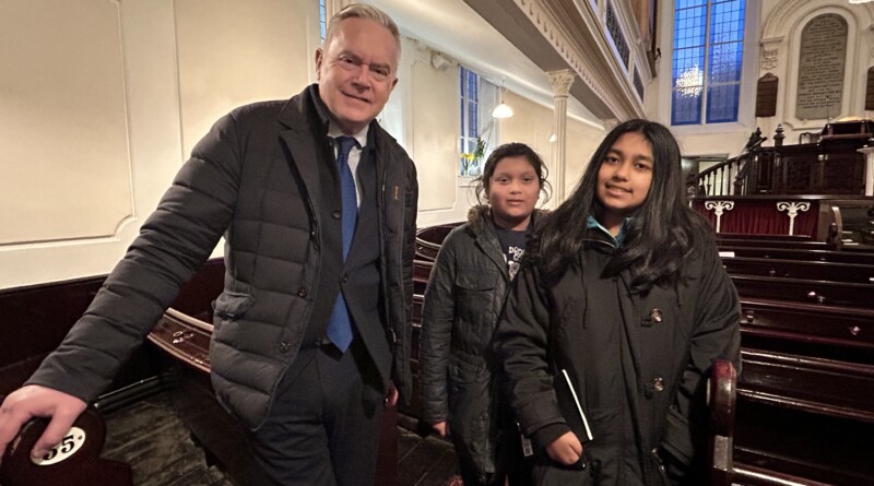 For a man who is so often used to asking the questions, BBC News’ legendary presenter Huw Edwards got a taste of what it’s like to be the one answering them when a pair of twins grilled him on life in South London.