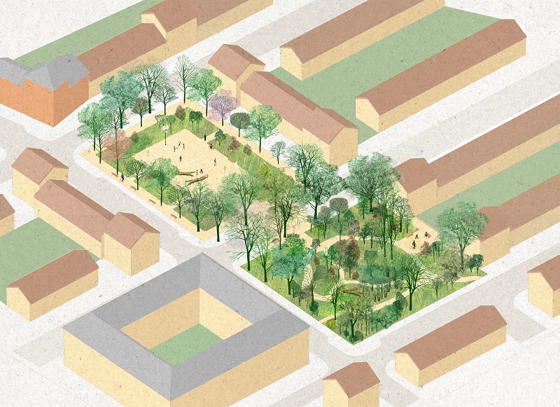 The historic green space to the south of Verney Road will become a ‘forest garden’ with open spaces to explore, which have the feeling of a woodland edge or meadow glade.