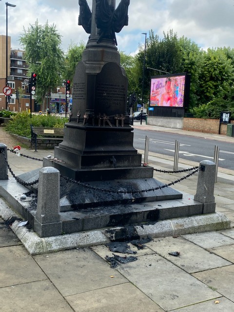 A wreath on the Bermondsey and Rotherhithe War Memorial, which commemorates the sacrifices made by local people in both World Wars, was set alight in the early hours of Tuesday morning (August 24).