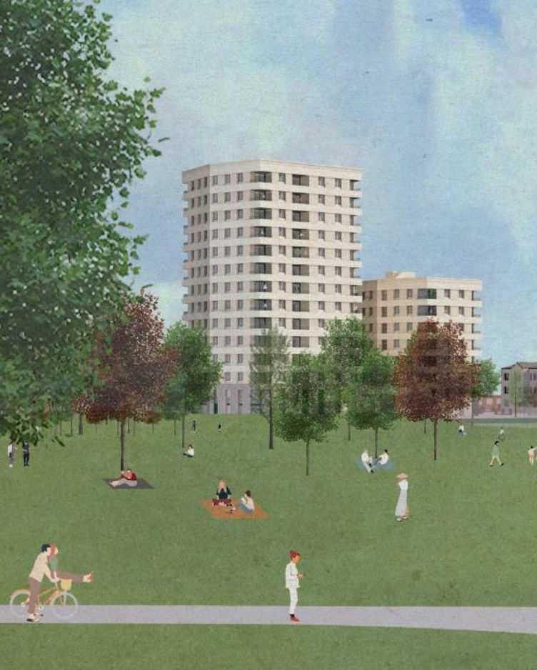 Illustration of the two tower blocks which will replace the former pub on one of the sites