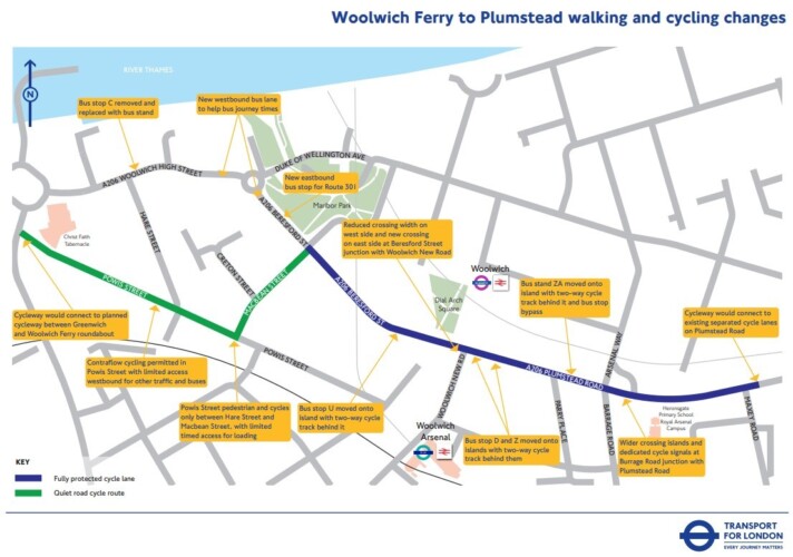 The transport authority announced on January 15 that it had planned to extend cycling facilities between the Woolwich Ferry roundabout and Plumstead in a series of changes planned for the area.