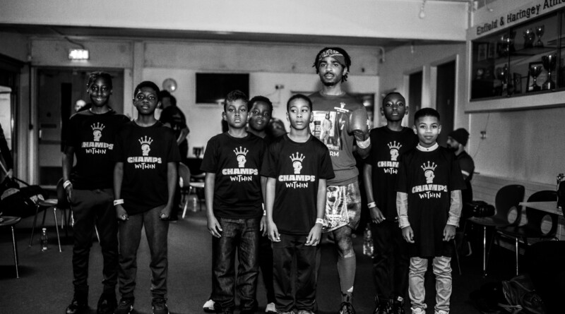 Pictured top: Champs Within kids support Sammy McKay before his boxing match (Picture: Champs Within and Miguel’s boxing gym)