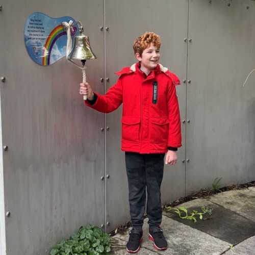 Daniel Jones marked the end of more than three and a half years living with leukaemia by ringing St George’s end-of-treatment bell – cheered on by his family and by staff.