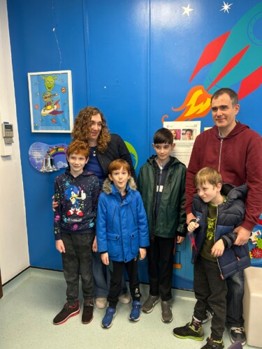 Last month, with Daniel’s close and extended family there to celebrate with him, and a huge batch of homemade cupcakes, he proudly rang the end-of-treatment bell on a cold but sunny day in St George’s gardens, cheered on not least by his three brothers.
