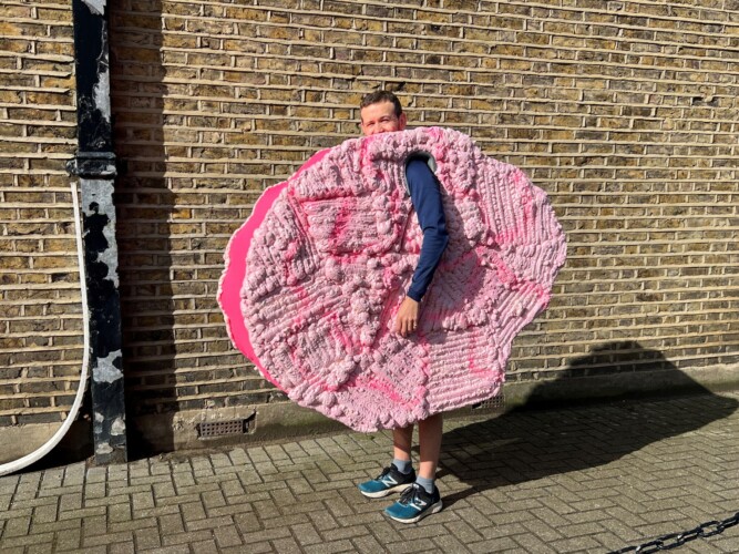 Alex Paget, of Hazelbourne Road in Clapham, will take on the 26.2-mile race dressed as a giant pink brain – a costume made of PVC pipes, cardboard, expanding foam and fabric, which took him 25 hours to make.