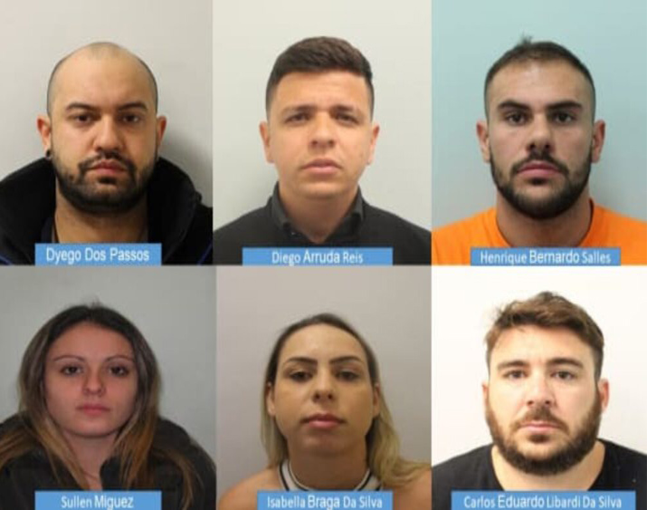 Suellen Miguez, 36, Carlos Libardi Da Silva, 35, Bernardo Salles, 27, Diego Arruda Reis, 35, Dyego Melo Dos Passos, 32, and Isabella Braga Da Silva, 22, were all part of a network.