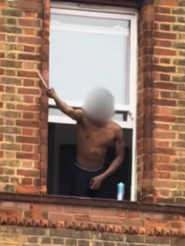 Videos circulating on social media show a man waving a knife from a window (Picture: Bikram Gahatraj)