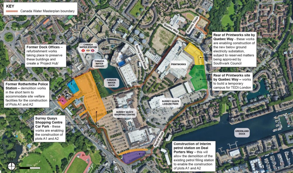 The masterplan, set to take 15 years to deliver, covers a 53-acre site including Surrey Quays Shopping Centre, Surrey Quays Leisure Park, the Printworks and the former Dock Offices courtyard.