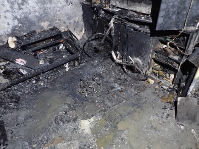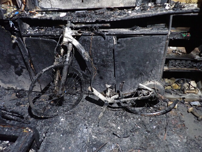The fire is being treated as accidental and is believed to have been caused by the failure of lithium batteries on a converted e-bike that was being charged at the time.