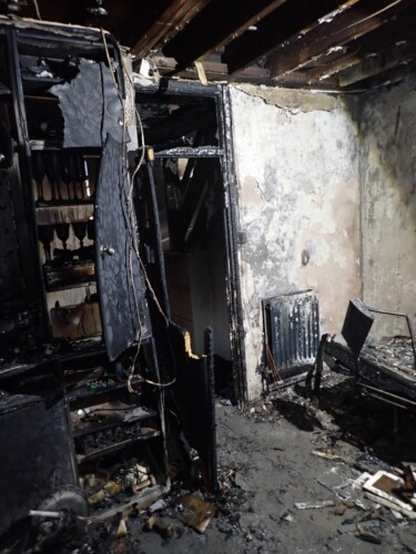 Most of the second floor of a split-level maisonette was damaged by fire. The third floor was damaged by heat and smoke.