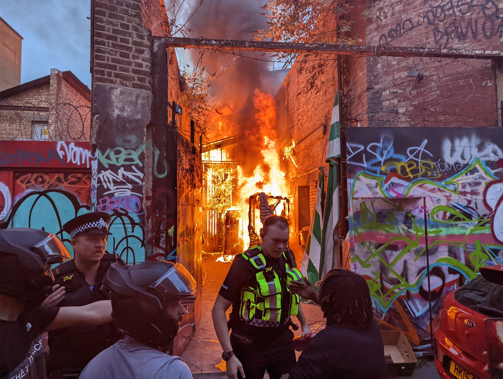 Huge fire in Brixton market right now, a worker said it is an area where items are stored for the market and people might still be in there pic.twitter.com/QgBb88P9PN
