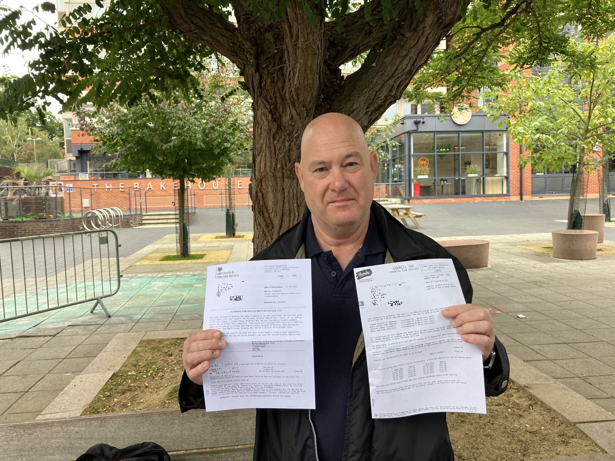 Pictured top: John Pritchard, who was summon to court by Bromley council for underpaying his council tax by £2, shown with his court summons and council tax statement (Picture: Joe Coughlan)