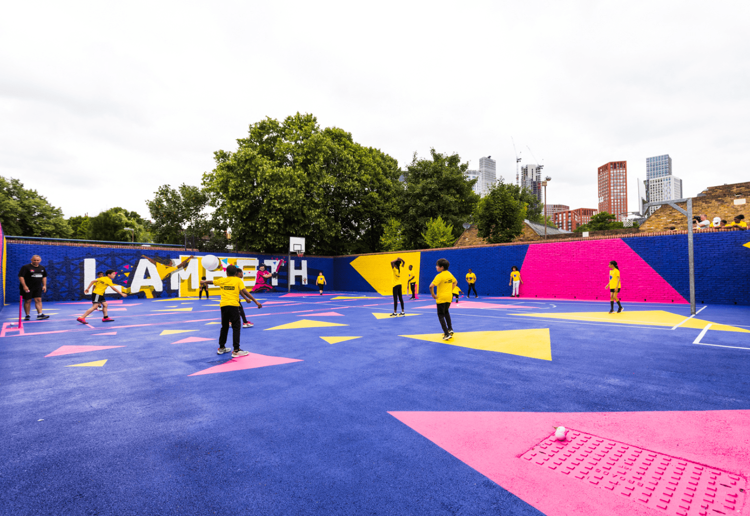 What was a sadly-neglected playground has become a welcoming splash of colour which should lure plenty of children to play cricket not a million miles from the famous Kia Oval ground.