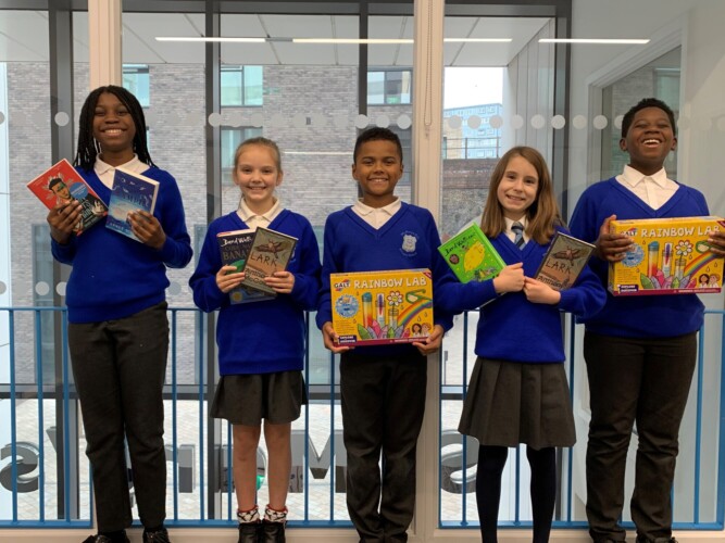 Pictured top: Children from St Mary’s RC Primary School Give A Book For Christmas Appeal 2020