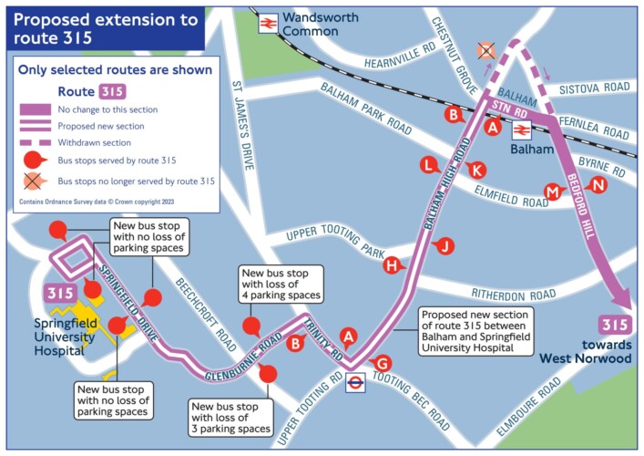 The extension to route 315 will mean buses will run between West Norwood and the new hospital in Tooting.