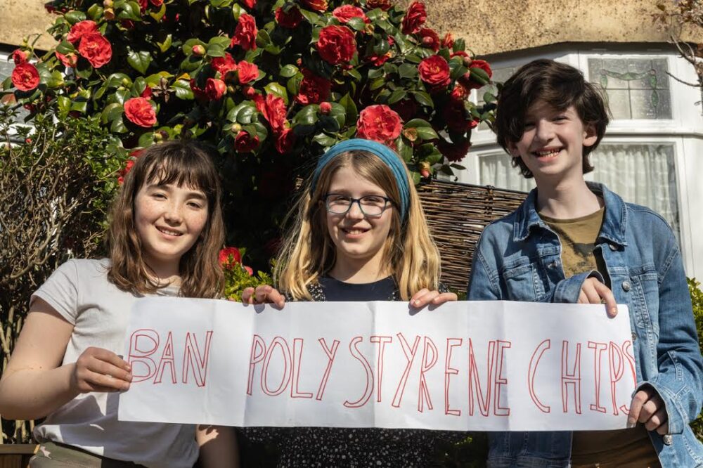 Camberwell girls Raya Branford, 11, Kate Leeming, 10, and Katia Woods, 10, who all attend Lyndhurst school in Camberwell have launched a petition online to stop the use of packing peanuts made from non-renewable plastic in the UK.