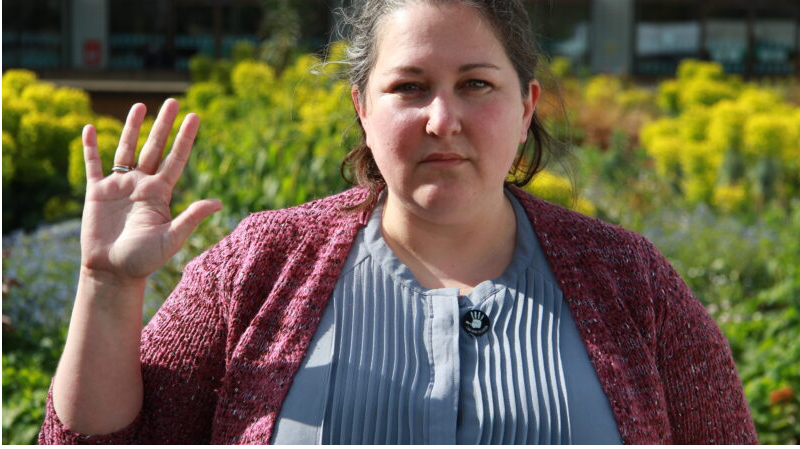 Staff will then be given a badge to wear, which has the Five X More hand symbol and reads ‘I am here to listen’.