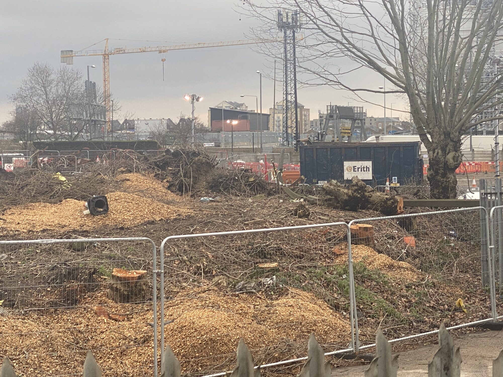 Despite the planning application being withdrawn, campaigners say many trees on the Greenwich peninsula, some of them more than 50 years old, have been marked with white crosses to designate them for removal, with some already having been felled.