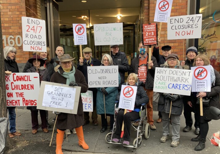 On December 7, 2021, a group of elderly residents from Dulwich protested outside Southwark Council’s offices against making the road closure permanent.
