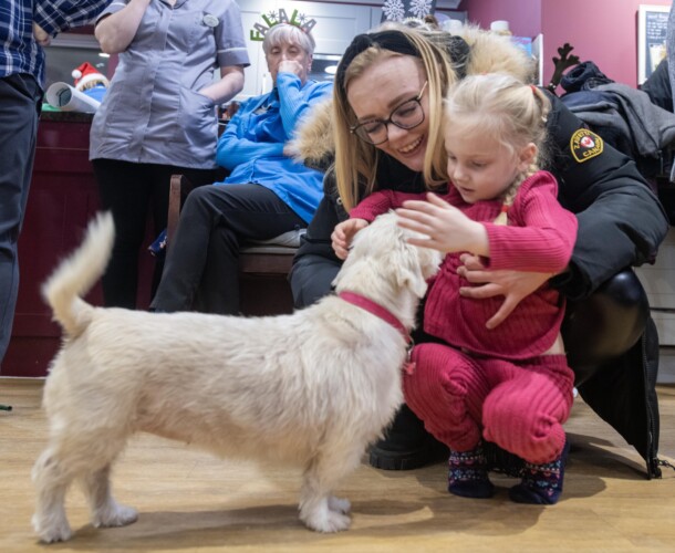 “We are continually amazed at what a difference these two little dogs make to our residents, everyone’s faces light up when the dogs arrive on their suites.