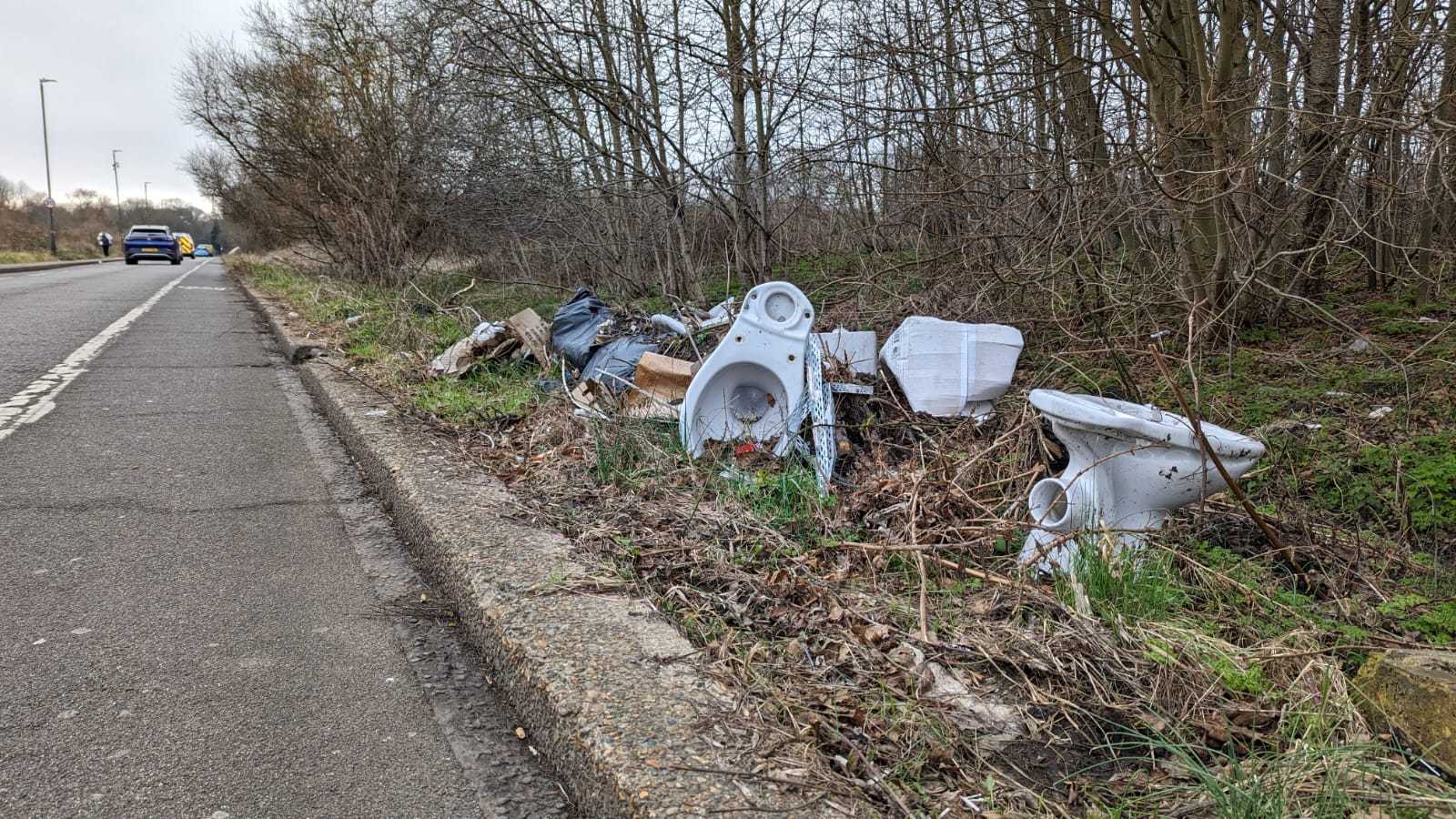 Among items dumped last week were several porcelain toilets, mattresses and computer hardware. Nappies, spirit bottles and condoms could also be found scattered alongside the 30mph road.