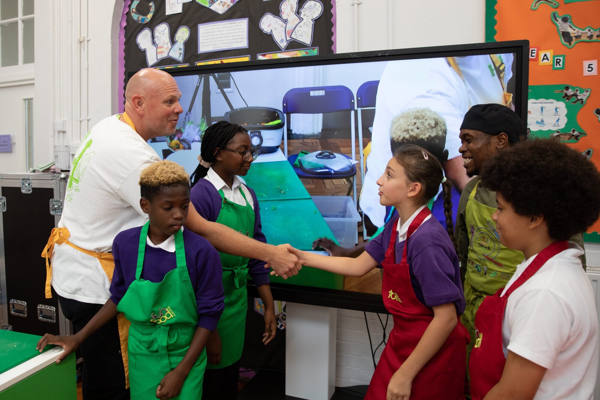 Michelin-starred Tom Kerridge visited a primary school in Lewisham yesterday to take part in a fun food workshop for his ‘Full Time Meals’ campaign.