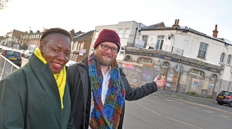 Pictured top: Magdalene Adenaike and Ed Cubitt outside the former Lord Napier pub in Thornton Heath (Picture: Grahame Larter)