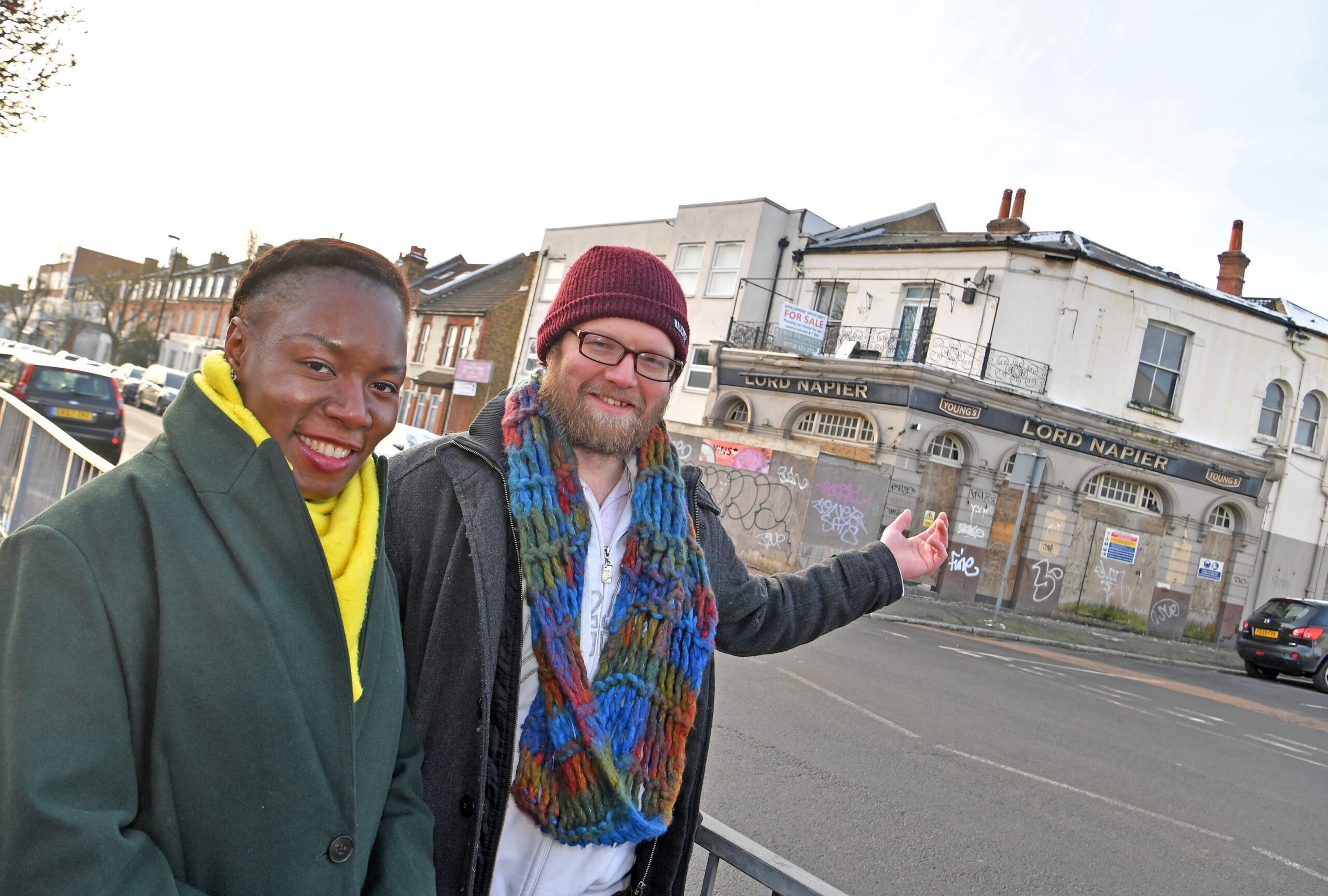 Pictured top: Magdalene Adenaike and Ed Cubitt outside the former Lord Napier pub in Thornton Heath (Picture: Grahame Larter)