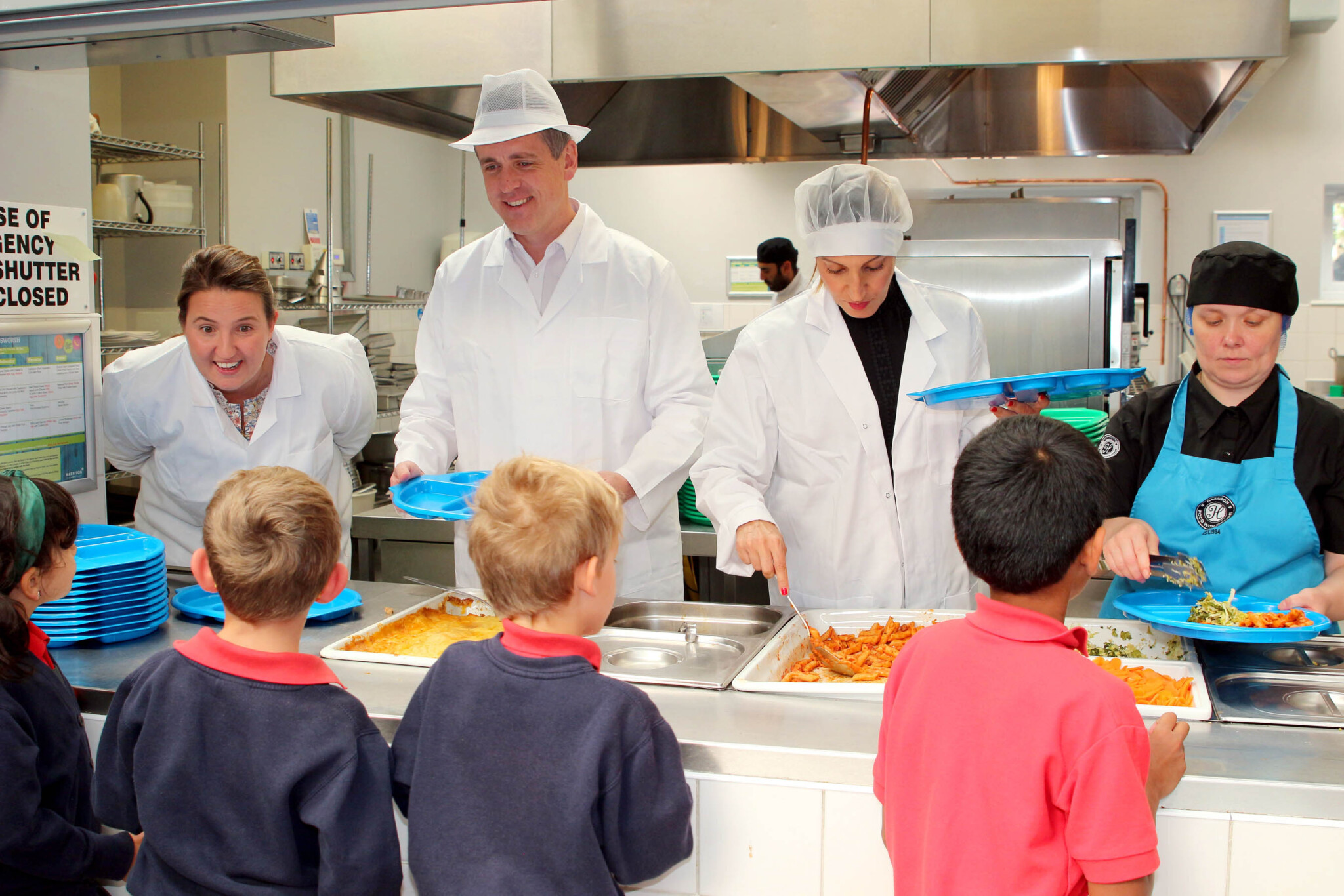 Students at Earlsfield Primary School, in Tranmere Road, had a visit from Wandsworth council leader Simon Hogg, cabinet member for children Kate Stock and Tooting MP Dr Rosena Allin-Khan, who helped serve them lunch.