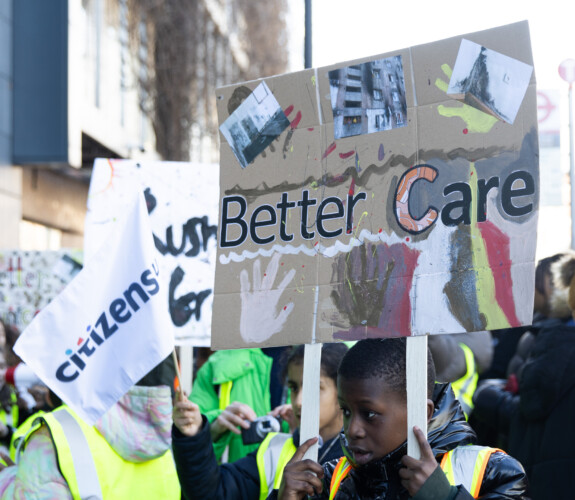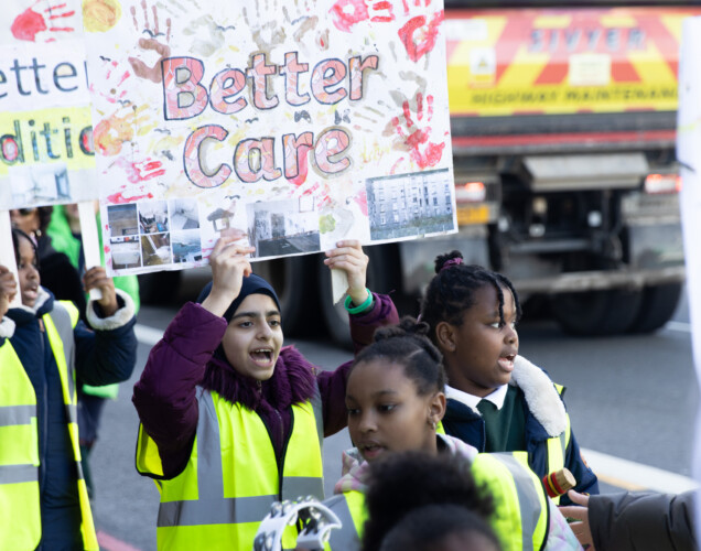 Hundreds of children, teachers, GPs and residents took to the streets on Friday in Lewisham to raise the alarm on the dire conditions of social housing in the borough (Picture: Salomé Revault d’Allonnes – Citizens UK)