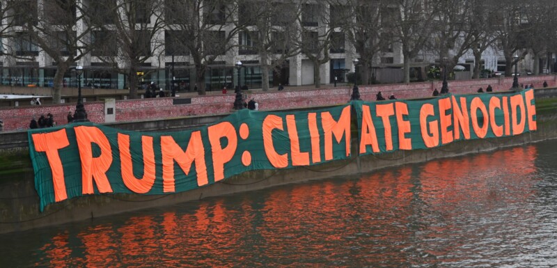 Groups gathered in Westminster and Whitehall to show collective opposition and alarm at the return of Trump – who says he will “drill baby, drill” and who chose as a first act the renouncement of the global Paris Accord on climate. The USA now joins Libya, Yemen and Iran as the only nations not signed up to it.
