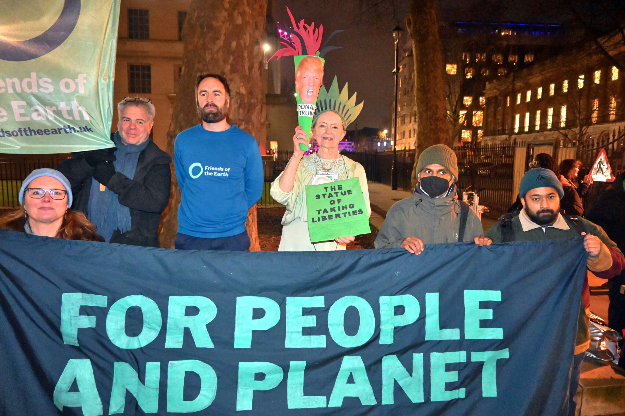 Jamie Peters, interim chief executive for Friends of the Earth, said: “We are here tonight to stand against Donald Trump and his divisive brand of politics and against his climate denialism, but also to stand together with marginalised groups that Donald Trump targets.