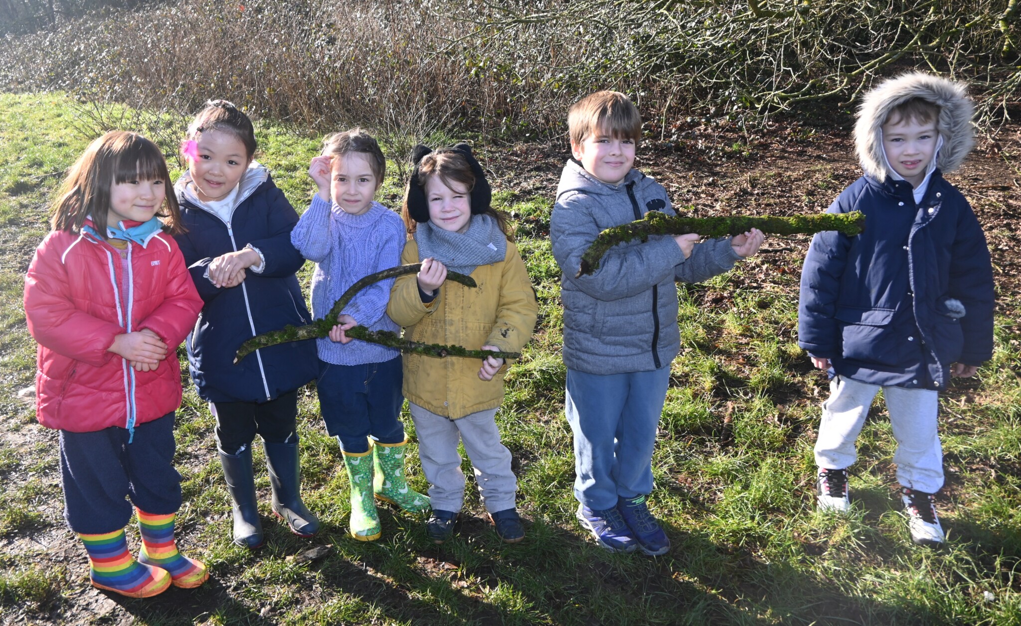 The youngsters went out on to the common looking for natural things to study under the microscope and collected mosses, lichens, leaves, seeds, grasses, pine cones and stones.