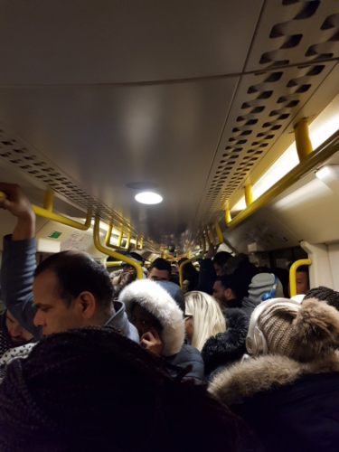 The train came to a halt before Lewisham station. The driver told the passengers that a train in front of them, which was an older model, was struggling to connect with the track because of the ice.
